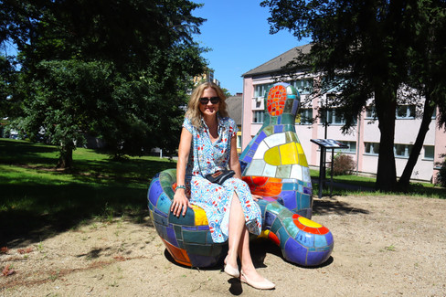 I am honored to announce that my colorful sculpture titled "Seated Figure" now adorns the space by the library in Chodov. I created this piece on the request of the city council to celebrate the 130th anniversary of Chodov being elevated to a town.